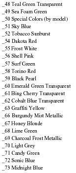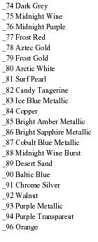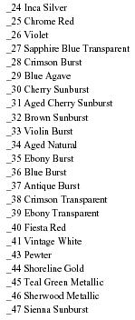 LISTA DE COLORES DEL CUSTOM SHOP PARA EL 2005